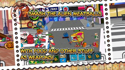 - Obtain and upgrade a wide array of weapons to help you beat back the Food Invaders